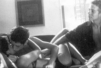 Behind Walls is a 16mm black and white short about Josie, a teen homegirl who spies on her younger brother and cousin when they get it on. She's trying to break the two up a bit so they'll regain the threesome status of their childhood years. The guys find her bedroom wall spy hole and use it to watch Josie with her new boyfriend. When he gets rough they run in and save her, and the friendship of the three is secured. Rory is a chicken who serves chicken. He works for a local chicken restaurant and during a local delivery meets Pete, a man having a mid-life crisis. Rory is drawn in to a platonic friendship with him, and his sexuality is challenged as he tries to come to terms with and understand the depth of his feelings. It's an innocent film made with charm, that highlights the experiences and fascinations for older men felt by many young gays.